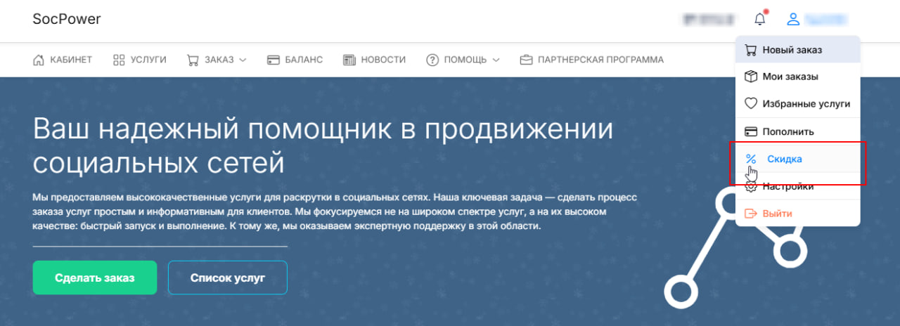 Для удобной работы с сохранёнными услугами добавлен отдельный раздел «Избранные услуги», доступный по адресу https://socpower.io/favorite