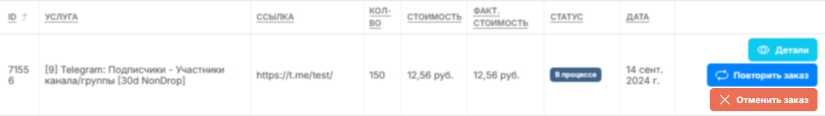 Если кнопки у заказа нет, но Вы всё-равно хотите его отменить — пожалуйста, обратитесь в поддержку, возможно мы сможем помочь. Но если Вы ввели неверную ссылку(например: для услуги подписчиков — ссылку на пост) — заказ с большей долей вероятности отменится сам.