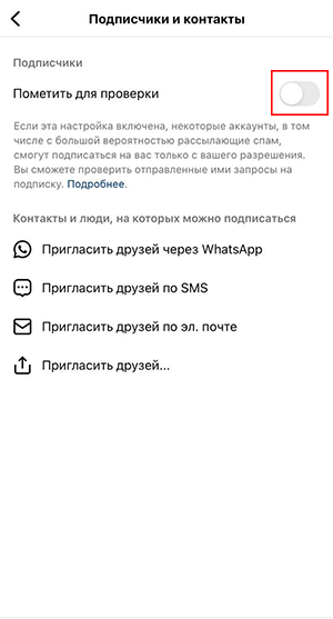 Обязательно перед заказом подписчиков Instagram, убедитесь что у Вас отключена функция "Пометить для проверки" в настройках.
